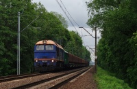 ST44-360 z pociągiem towarowym nr 114007 relacji Warszawa Praga - Sokółka zbliża się do przystanku osobowego Trypucie.