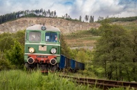 ST43-366 na czele pociągu specjalnego "Rumunem przez Bałaje" rel. Jarosław - Zamość mija nieczynną, zatrzymaną w czasie stację Nowa Grobla.