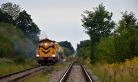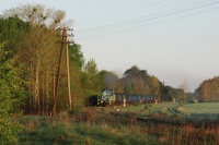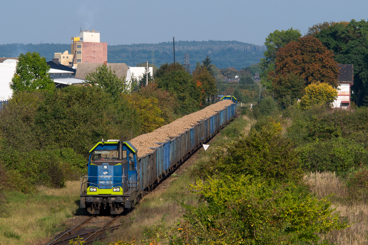 Buraczany skład z Kietrza do Raciborza przejeżdża przez byłą stację Racibórz Studzienna. SM42-1203 na popychu, SM42-1224 na uciągu.
