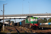 TEM2-266 z pustymi platformami Moris służącymi do przewozy szyn, opuszcza Trzciankę w kierunku Piły i dalej uda się do Kołobrzegu.