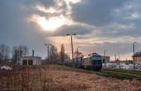 Szlak Nowe Drezdenko-Krzyż. BR285-127 z pociągiem towarowym z Międzyrzecza do Gdańska. Samo zdjęcie wykonane z magistrali Poznań-Szczecin.