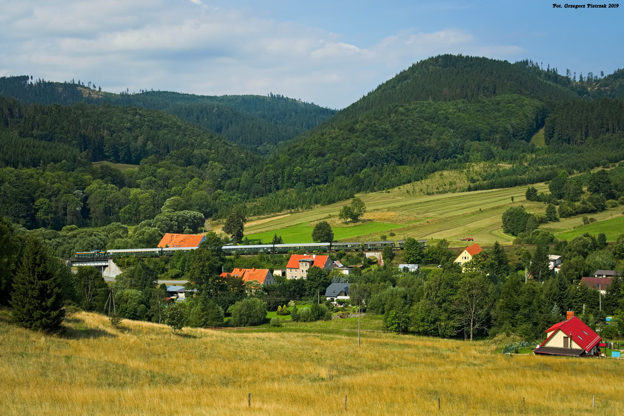 Godz: 11:44 Unisław Śląski II SU42-536 II. Pociąg specjalny "Dzik" relacji Wałbrzych Główny - Mieroszów po minięciu przystanku Unisław Śląski zmierza w kierunku stacji Mieroszów.