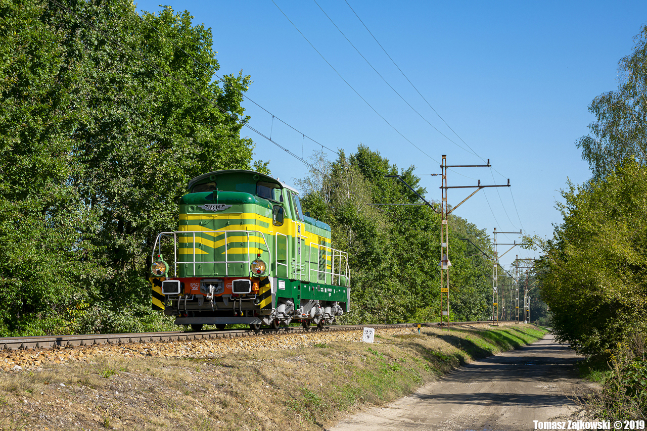Pięknie odmalowana stonka jedzie na szopę WKD przy stacji Grodzisk Mazowiecki Radońska, gdzie będzie eksponowana w związku z obchodami Dnia Transportu Publicznego. Zdjęcie zrobione pomiędzy p.o. Kazimierówka a p.o. Brzózki. Gdyby ktoś kilka lat temu zapytał mnie o to czy wierzę, że zobaczę w tym miejscu SM42 w fabrycznych barwach, to bym go chyba wyśmiał.