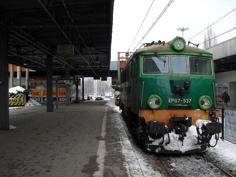 EP07-537 stoi na stacji Łódź Fabryczna. W głębi zdjęcia (przy znaku parkowania) stacja meteorologiczna będąca własnością Uniwersytetu Łódzkiego. Na ogrodzonym niewielkim terenie mieści się budynek z aparaturą pomiarową, 2 skrzynki meteorologiczne oraz ok. 10 metrowa wieża z urządzeniami do pomiaru siły wiatru. Stacja na co dzień jest zamknięta. Co roku w lipcu i sierpniu służy studentom geografii UŁ, którzy odbywają tu ćwiczenia terenowe.