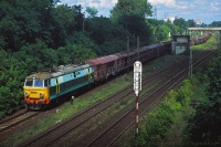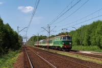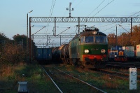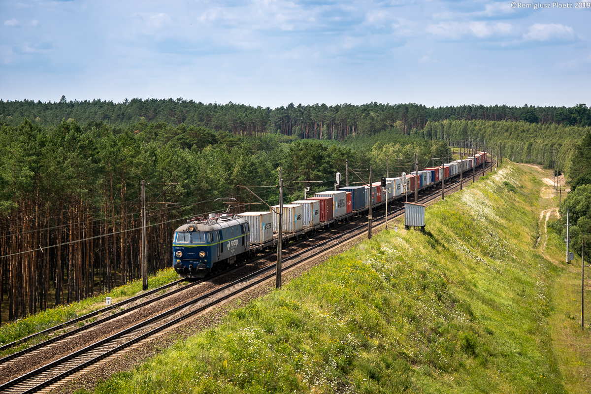 ET22-715 ze składem kontenerów zbliża się do Warlubia, szlakiem z Laskowic Pom.