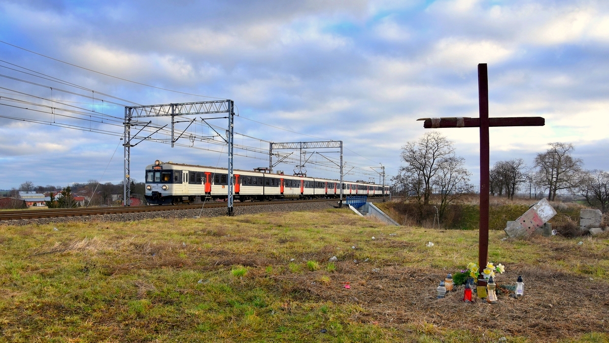 Szlak Szymankowo-Tczew. EN57-1112 + EN57-1184 jako pociąg osobowy rel. Malbork-Gdynia Chylonia opuścił przystanek osobowy Lisewo.