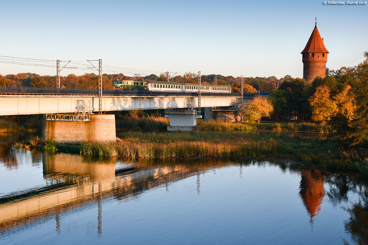 Tak też było ;) Puste parkingi wokół zamku, pojedyncze osoby spacerujące na kładce nad Nogatem, a co najlepsze fantastyczna pogoda - to była połowa października, a wieczór był na tyle ciepły, że stałem tam w krótkich spodenkach, koszulce i okularkach przeciwsłonecznych. Przewinęło się też parę towarów - jak na złość ten najciekawszy w postaci zielonej podwójnej Skody z brązowymi węglarkami zwiał mi jak wspinałem się na filar, z którego wykonywałem zdjęcie. Na szczęście w zanadrzu jechała powyższa siódemka ;)