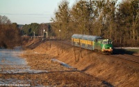19.02.2011 |Krzyż- Nowe Drezdenko| SU45-064 wraz z poc. spółki Przewozy Regionalne R-80427 rel. Krzyż- Kostrzyn za chwilę przejedzie pod wiaduktem magistrali Poznań-Szczecin.