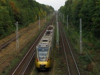 EN61-01 Pociąg Papieski goszczący w Pelplinie z okazji dziesięciolecia wizyty teraz świętego Jana Pawła II w tym mieście. Pociąg kursował tego dnia z Gdańska do Pelplina i z Malborka do Pelplina. Kurs widoczny na zdjęciu przybył z Malborka. W 2009 ten wóz, mimo oczywistych konotacji z EN57, w woj. Pomorskim wyglądał niecodziennie i nowocześnie na tle pozostałego taboru kręcącego się po okolicy.