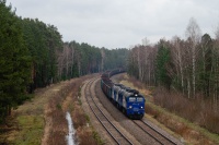 ST44-358 ze składem beczek relacji Suwałki - Mockava zmierza w stronę Trakiszek.