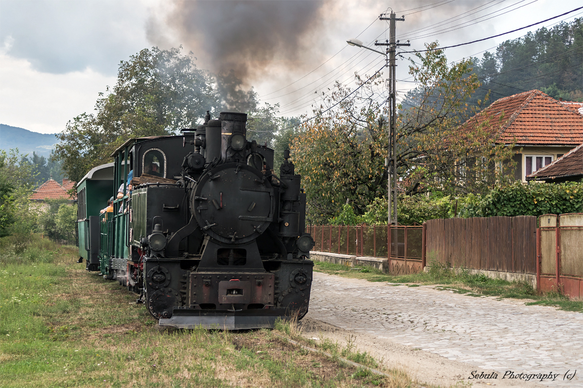 Turystyczny pociąg prowadzony parowozem o oznaczeniu Intr.Atel.Centrale Criscior 5 za chwilę opuści miejscowość Brad. Skład do pokonania ma jeszcze nieco ponad 5 km (z 7 km całej linii). Warto dodać, że składy turystyczne relacji Brad-Crișcior jeżdżą od 2001 r. Wcześniej, bo od 1907 do 1998 r. linią tą wożono węgiel.