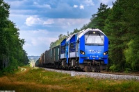 311D-07, w tandemie z SM42-2291, prowadzi pociąg towarowy relacji Dobre Miasto - Puławy Azoty, mijając semafory wjazdowe stacji kolejowej w Bogaczewie po pokonaniu szlaku z Pasłęka.