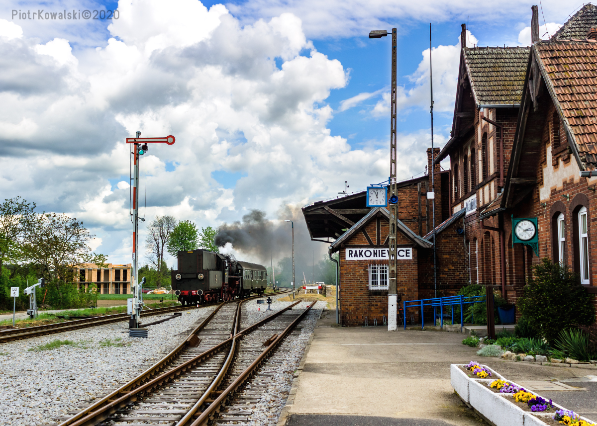 Osobowy 77212 z Poznania do Wolsztyna wjeżdża na przepiękną stacyjkę Rakoniewice. Kwietniki, sygnalizacja kształtowa, zadbany budynek i parowóz na planówce. Czego chcieć więcej na majówkowy wyjazd?