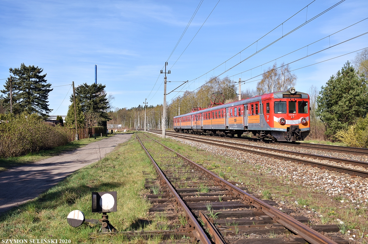 Klasyczna jednostka elektryczna EN57-701 należąca do Warmińsko - Mazurskiego Zakładu POLREGIO w Olsztynie wyjeżdża z Ostródy, pociąg REGIO 90750 relacji Olsztyn Główny - Malbork.