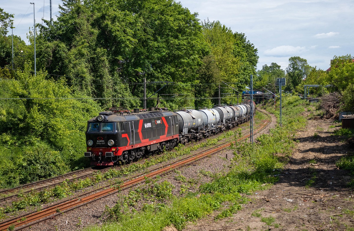 Na zdjęciu skład wyjeżdża ze stacji Szczecin Niebuszewo w stronę Wzgórza Hetmańskiego.
