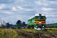 Dwusuwowy szeroki Gagarin wjeżdża na stację graniczą w Kuźnicy. 2 z 3 wagonów pojadą później na terminal firmy Barter z lokomotywą