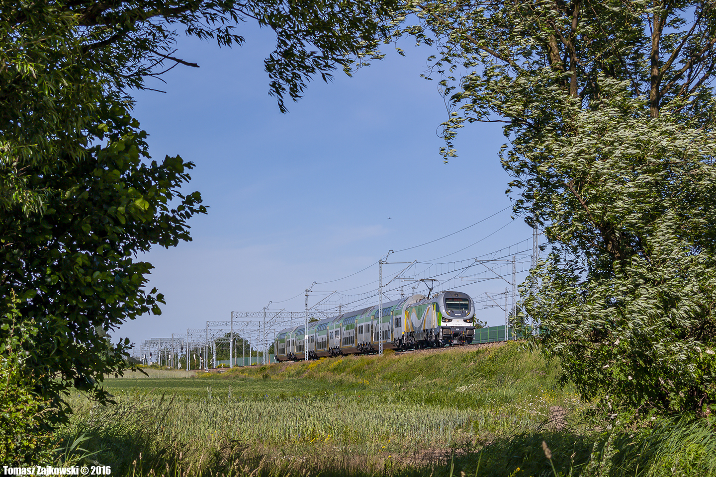 111Eb-002 na czele pociągu przyśpieszonego "Wiedenka" z Warszawy Wschodniej do Skierniewic, mknie szlakiem Pruszków - Grodzisk Mazowiecki.