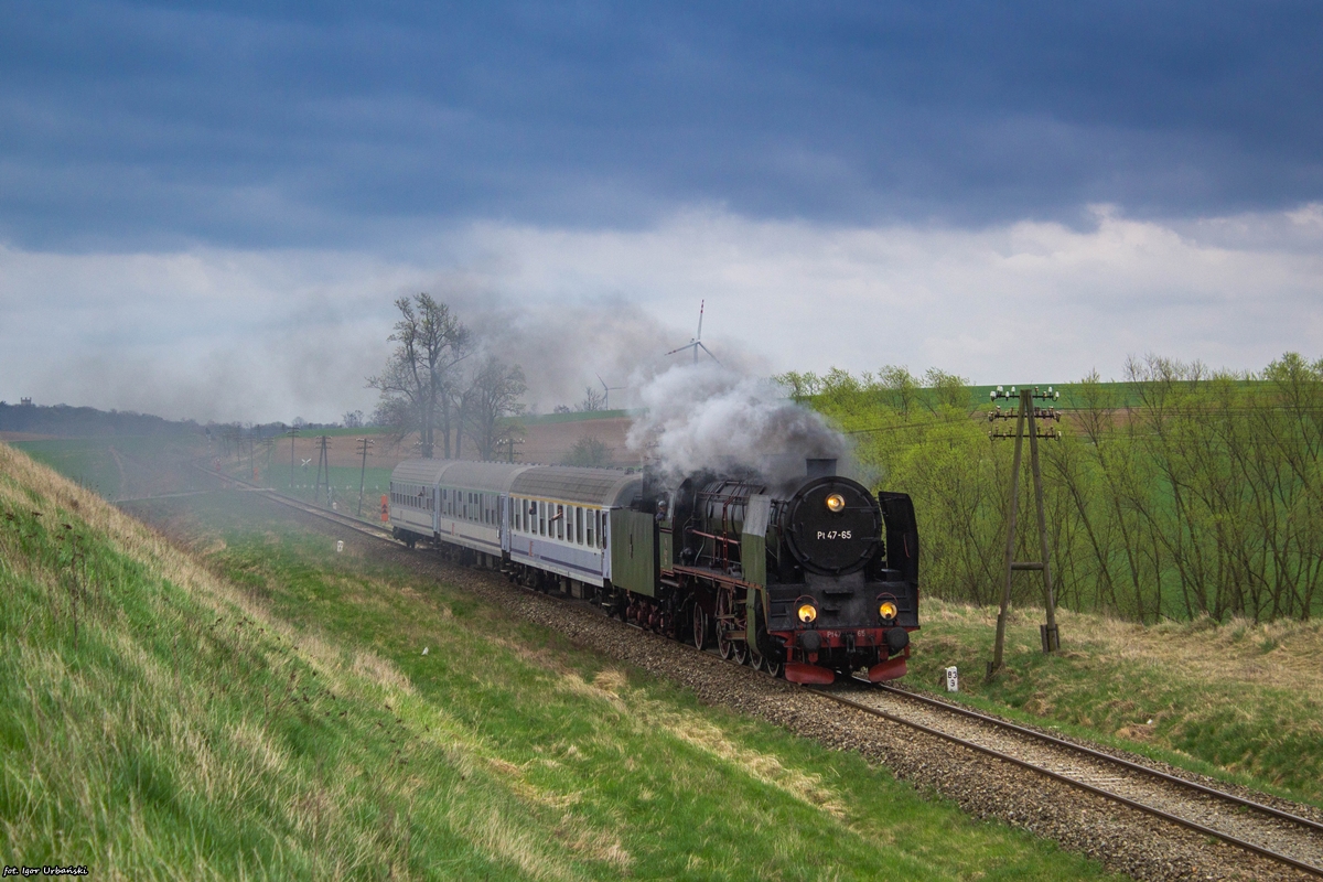 Pt47-65 prowadząca skład specjalnego pociągu ''Klimek'' relacji Grudziądz - Jabłonowo Pomorskie - Grudziądz na szlaku Jabłonowo Pomorskie - Mełno