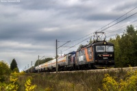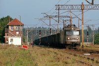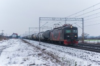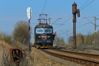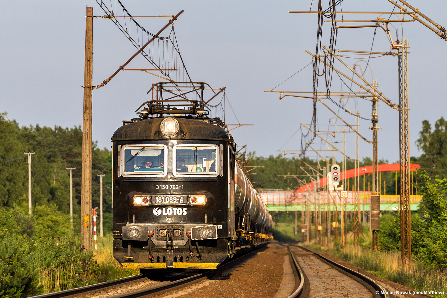 Czarna Skoda LOTOSu z cysternami na haku minęła Bydgoszcz Leśną i podąża w kierunku Maksymilianowa, a następnie dalej na północ. Niestety słupy trakcji są tutaj bardzo gęsto rozlokowane, co przy mocnym zbliżeniu daje się we znaki przy kadrowaniu.