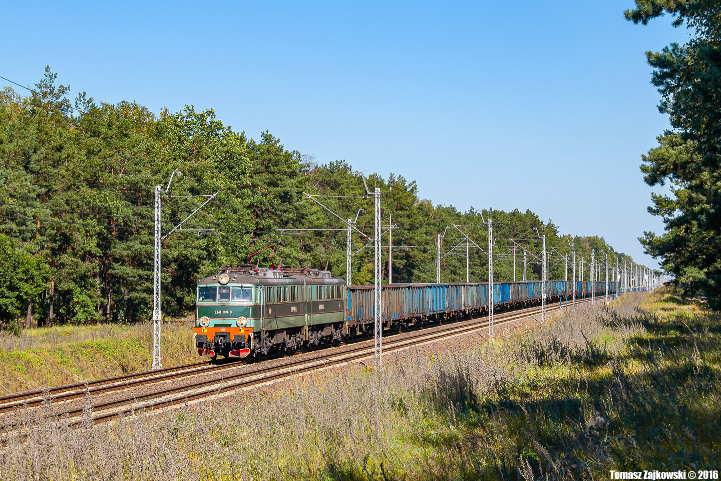 ET41-001 na czele pociągu towarowego relacji Warszawa Rembertów - Ornontowice Budryk zbliża się do Skierniewic. Lokomotywa uczestniczyła w wypadku w Warszawie (lasek na Kole) na skutek której uległa uszkodzeniom uniemożliwiającym jej dalszą eksploatację. Serdeczne podziękowania dla Patryka Kurędy, dzięki któremu to zdjęcie powstało. :)