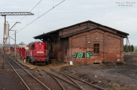 T448p-042 DB Cargo mija luzem budynek nastawni posterunku odgałęźnego Szczecin Zdroje. Lokomotywa wraca z manewrów na szczecińskim Dunikowie, skąd wyciągnęła skład węglarek ze złomem na stację Szczecin Dąbie SDA. Tam na węglarki czekał już czerwony Vectron tego przewoźnika. W powyższe miejsce przyjechałem wcześniej w celu złapania ET22-676 z brązowymi wagonami krytymi, jednak nieszczęśliwie skład zasłonił mi jadący z przeciwka Impuls.