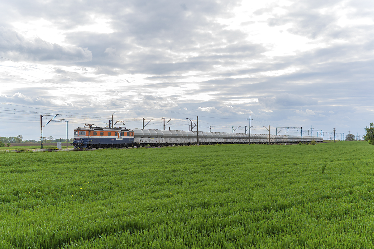 183 016-5 ze składem gruszek jedzie szlakiem Mimowola - Inowrocław Rąbinek w stronę południa.
