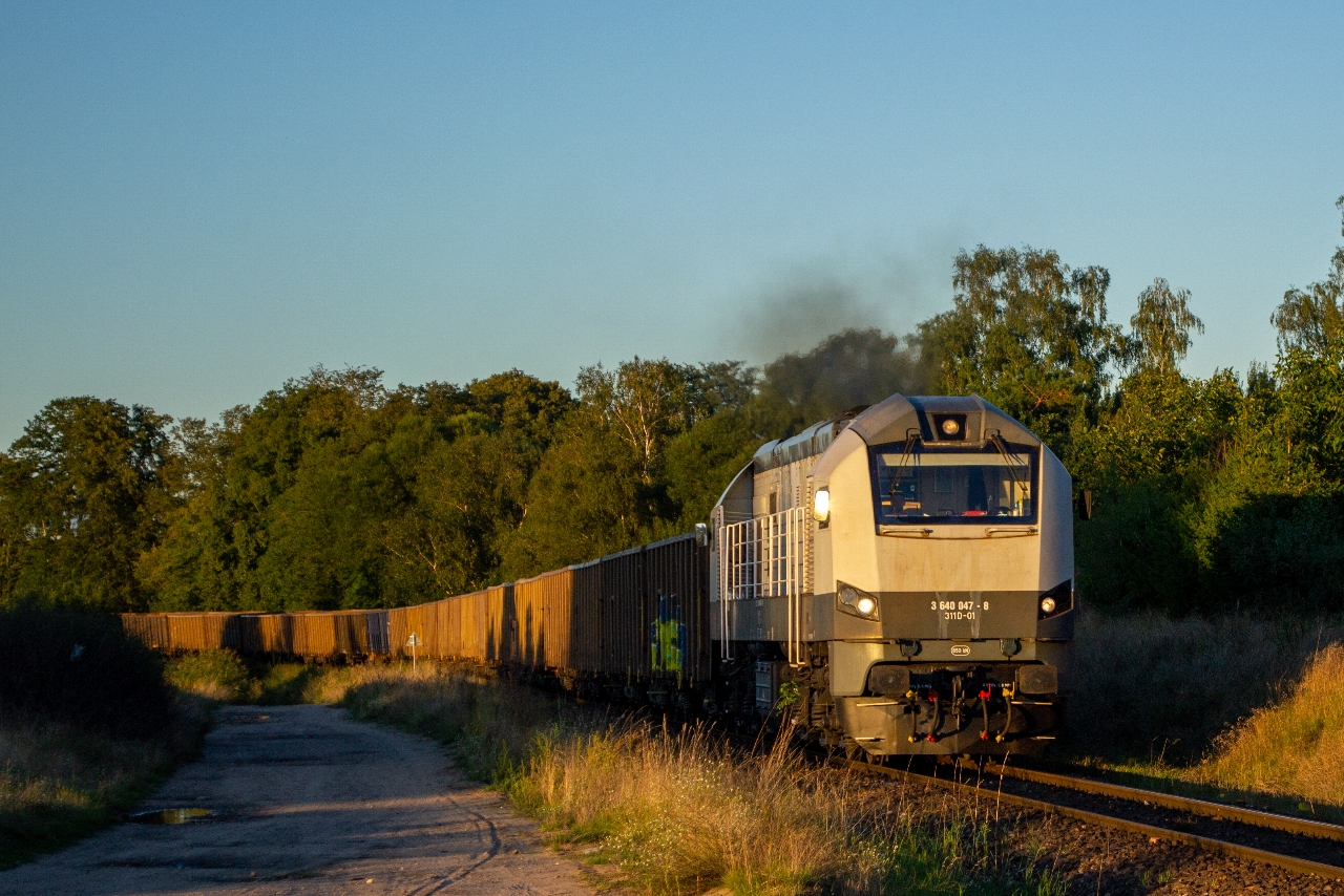 19:05 przychodzi informacja, 311D-01 rusza z Gryfic na Szczecin. Szybkie obliczenia - nie zdążę - pomyślałem. Ale jednak się wybrałem, do pokonania miałem 10km, samochodem żadne wyzwanie. No i jednak się udało, warunki też dopisały, to były ostatnie minuty gdzie słońce jeszcze coś doświetlało. Gwoli ścisłości: 311D-01 Colas Rail z próżnymi węglarkami w relacji Gryfice - Rogoźnica opuszcza Płoty kierując się na Goleniów i dalej na południe.
