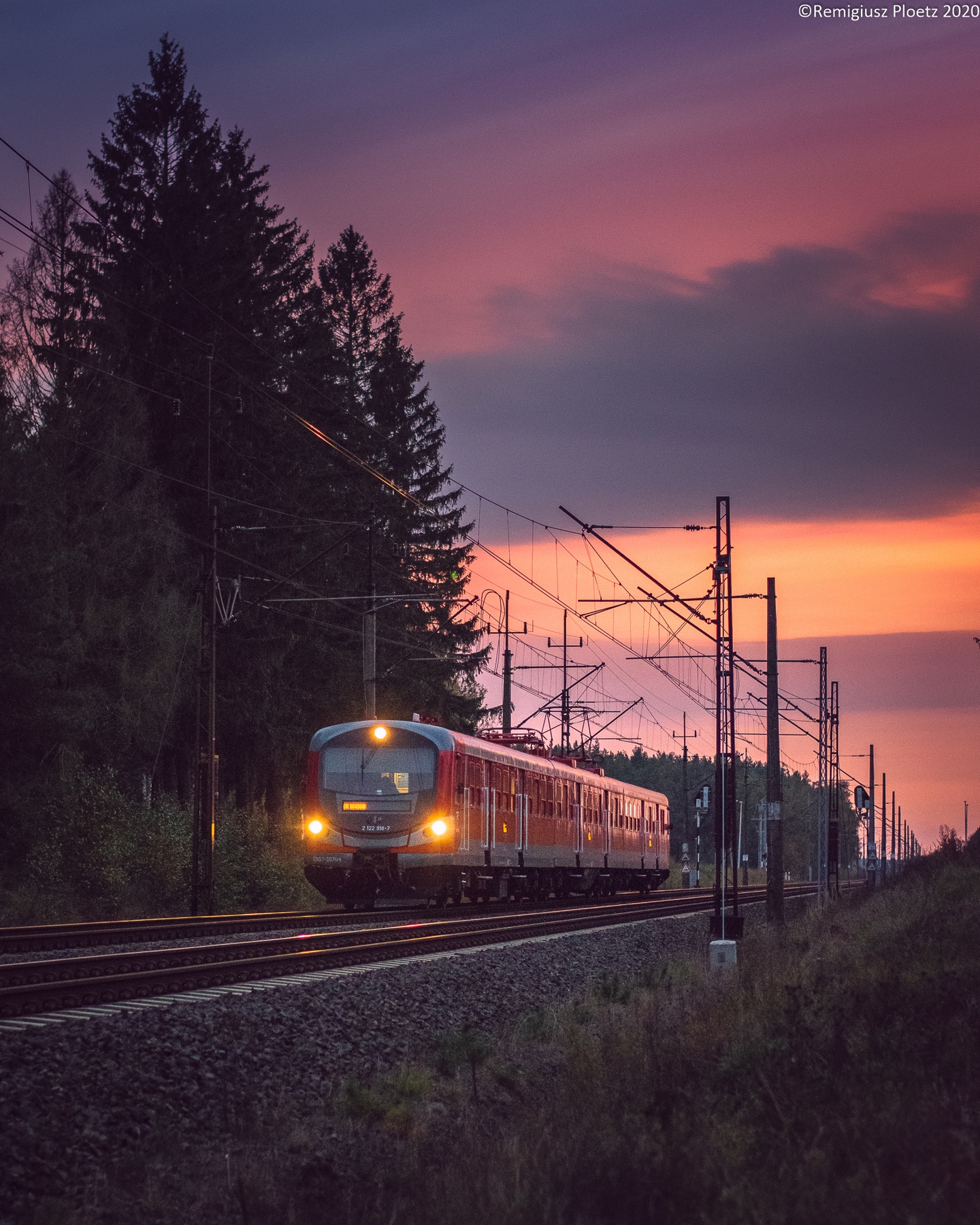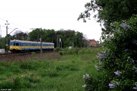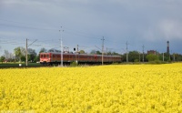 EN57-2074 jako poc. 85429 Piła Główna - Olsztyn Główny zbliża się do Biskupca Pomorskiego szlakiem z Ostrowitego k/Jab.