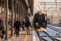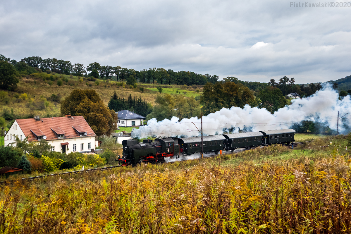 Tekatka z pociągiem specjalnym ANTRACYT do Kłodzka mija pierwsze zabudowania Wałbrzycha.