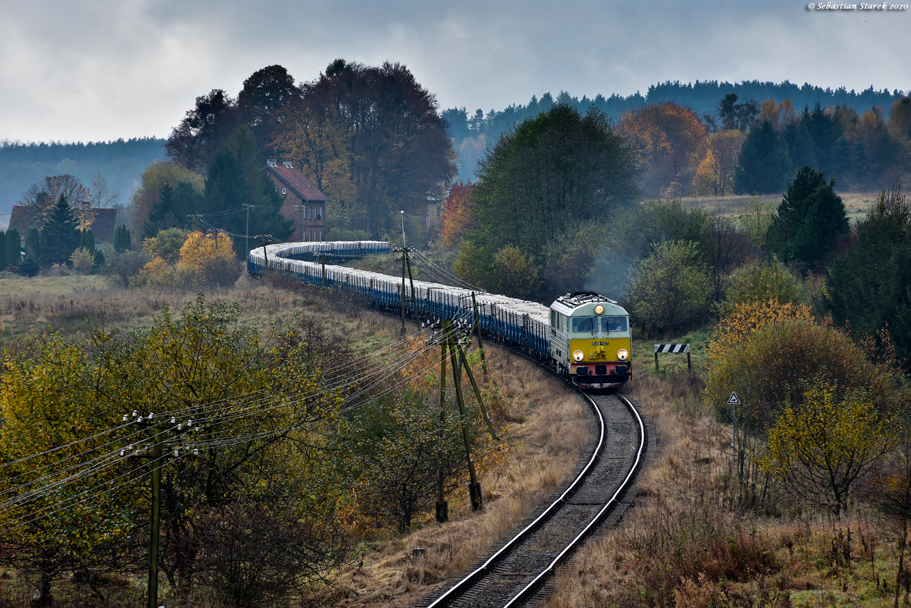 Dzięki Panowie! Paweł, warunki byłyby ciężkie z jakąś godzinę wcześniej, bo była tam mgła jak mleko, no i było dosyć ciemno, bo to był jeszcze wczesny poranek, na szczęście w porę zaczęło wszystko opadać i delikatnie się rozjaśniać przez co stworzył się fajny, charakterystyczny klimat taki jak na zdjęciu, słońce delikatnie się przebijało oświetlając niektóre partie chmur w tle :) Gdybyśmy mieli długie dni jeszcze na deser byłby także trzeci towar - na powrót po drugiej partii platform suka zabrała spod dobromiejskiego elewatora skład Simm'sów w duecie z SM42-866 :)