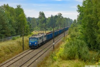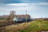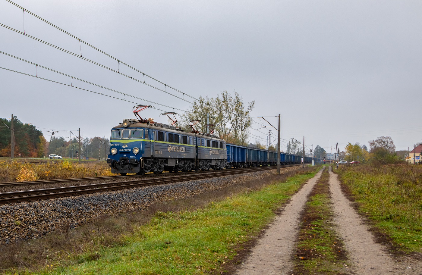 ET41-151 PKP Cargo ze składem węglarek do Świnoujścia po krótkim postoju na stacji Szczecin Dąbie udaje się na północ. Jamnik akurat ma podniesione wszystkie patyki w górę.