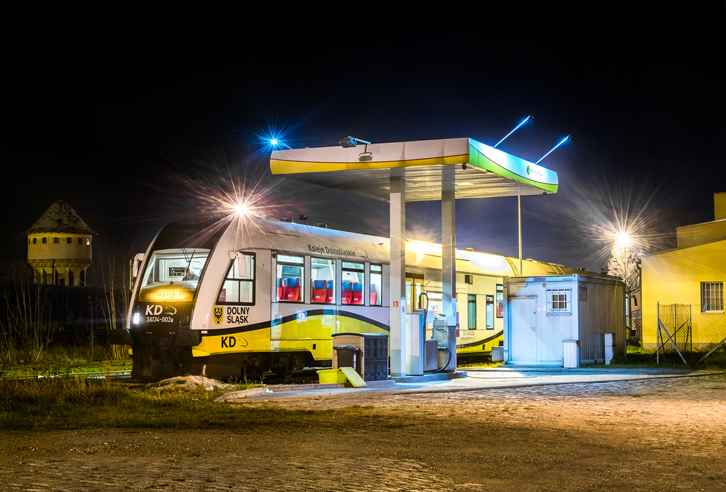 SA134-003 po skończonym tankowaniu na stacji paliw PKP Energetyki szykuje się do wymanewrowania w tory stacyjne, po czym pojedzie jako "S" do Kłodzka Głównego, gdzie następnego dnia zacznie służbę.
