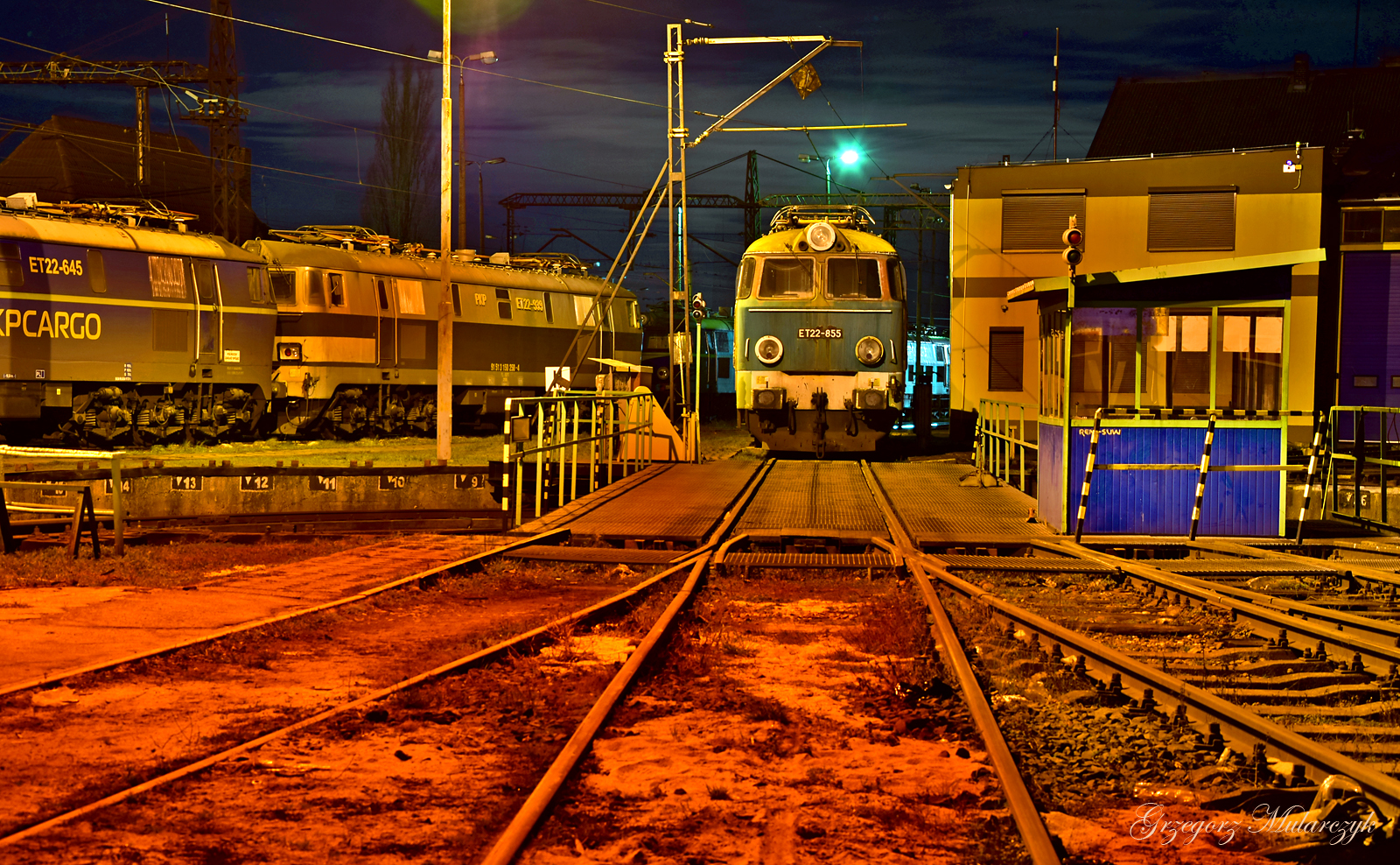 Tak mógłby to opisać ET22-855, który jak dotąd z Zajączkowa nie odjechał. Jedynym jego ruchem, niestety w martwym ciągu jest moment jak ten na zdjęciu. Akurat lokomotywa niespiesznie przestawiana jest z jednego miejsca postoju na inne, gdzie pewnie mniej komuś zajmuje potrzebne do czegoś miejsce. Trafi stąd do pozostałych wraków ET22 zebranych obok kanału przeglądu kontrolnego. Stojący obok uziemiony ET22-939 będzie miał więcej szczęścia, i za pół roku od wykonania zdjęcia jego koła znów poczują stalowy szlak.