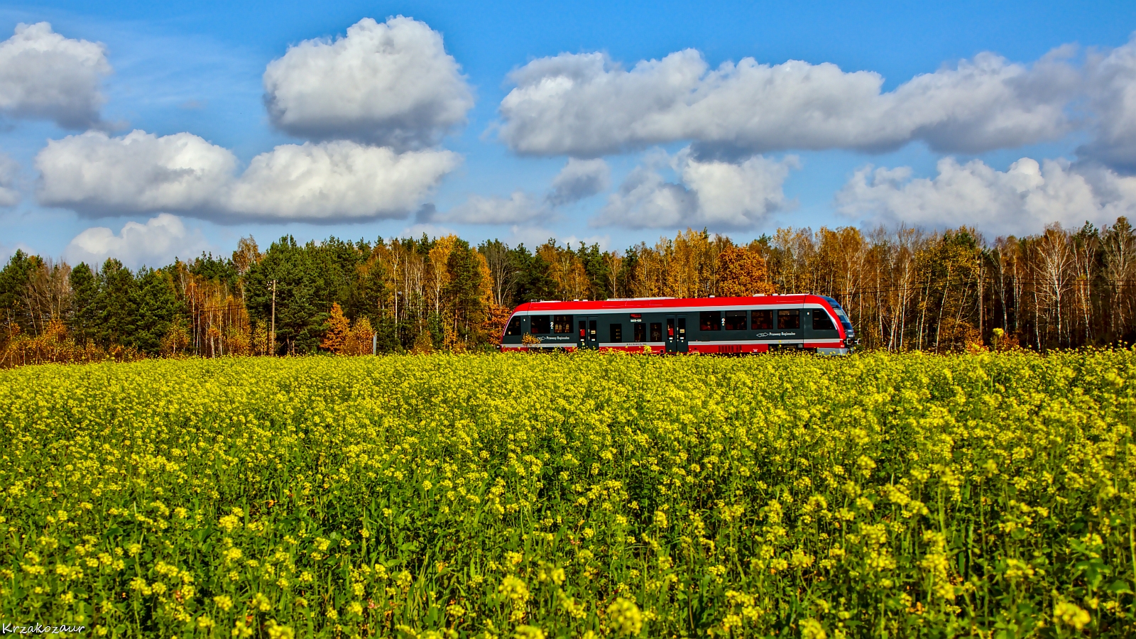 Świetne zdjęcie! Super połączenie jesiennego rzepaku z barwami liści tej pory roku +