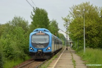 Zmodernizowana jednostka elektryczna EN57ALd-2223 należąca do Warmińsko - Mazurskiego Zakładu POLREGIO wjeżdża na tor 1 stacji Elbląg, pociąg REGIO 50725 relacji Malbork - Olsztyn Główny.