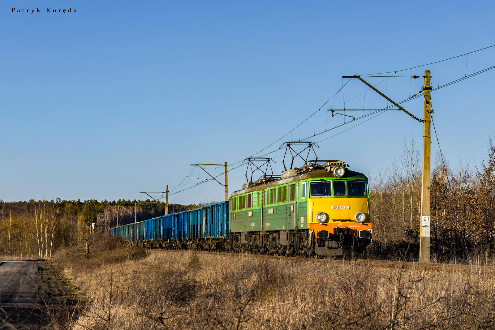 ET41-153 ze składem pustych węglarek relacji Ostrołęka-Małaszewicze zbliża się do stacji Wyszków na szlaku z Przetyczy.