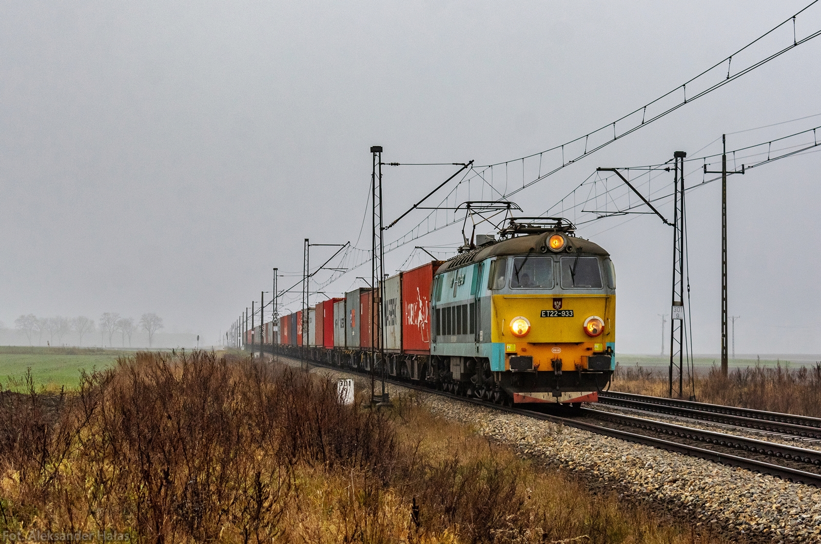 ET22-933 z pociągiem TDE 452006/7 relacji Sławków Euroterminal - Gdańsk Port Północny jedzie szlakiem Chełmce - Karczyn.