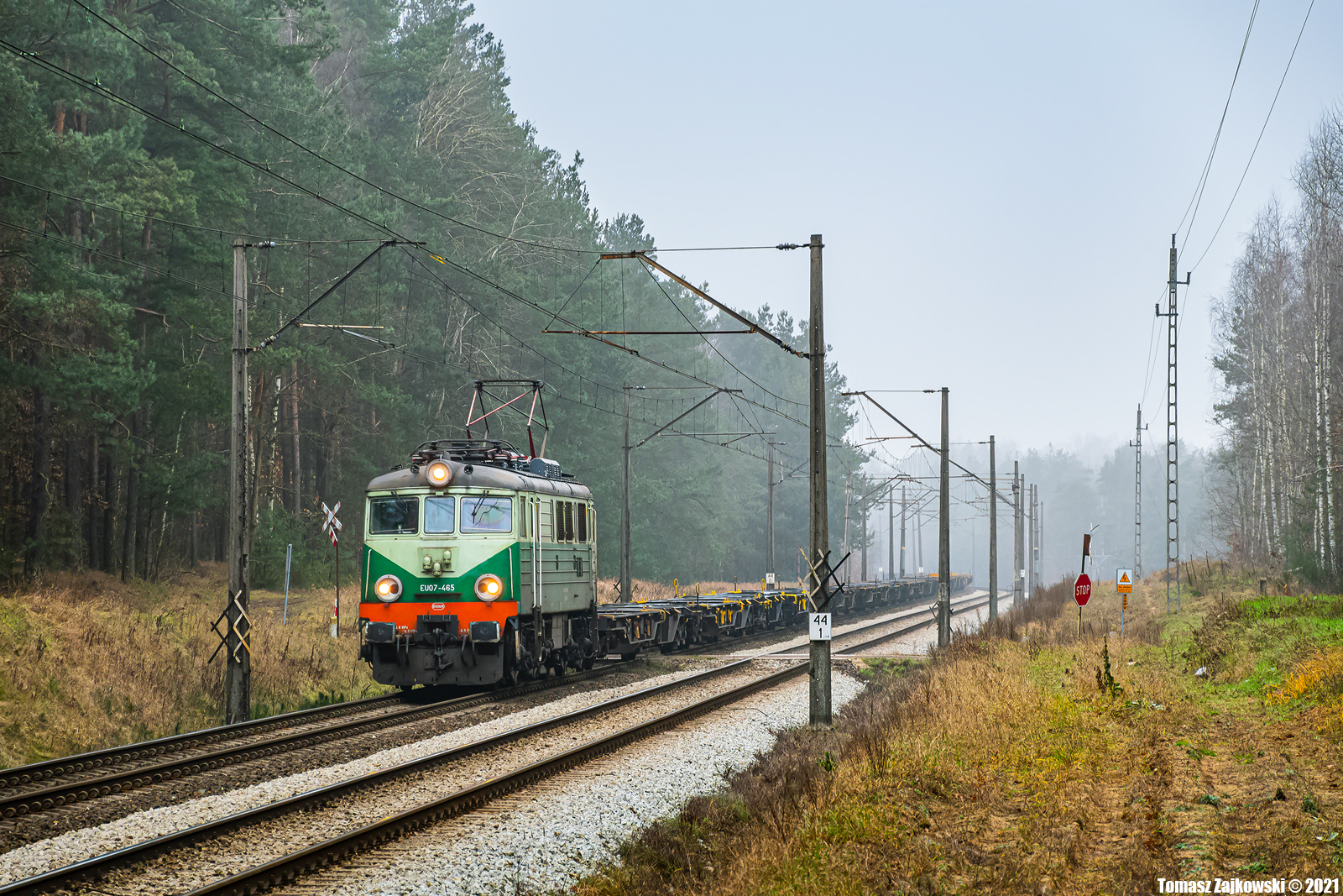 EU07-465 z pociągiem do Małaszewicz, jedzie szlakiem Mszczonów - Tarczyn. Fajna lokomotywa się trafiła na pierwsze zdjęcie w 2021 roku.