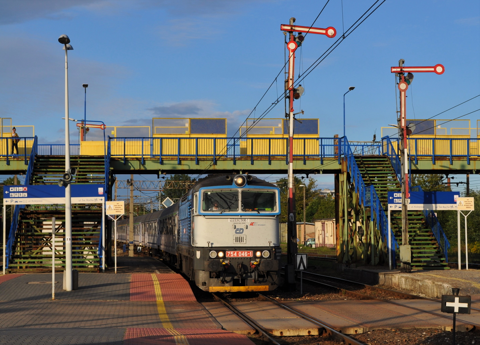 754 046 z pociągiem TLK Hańcza relacji Suwałki - Kraków Główny wjeżdża na stację Białystok. Za kilka chwil Nurek odepnie się od składu, a SM42-283 przyprowadzi lokomotywę elektryczną, która poprowadzi pociąg w dalszą drogę, w tym przypadku EU160-004.