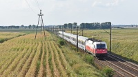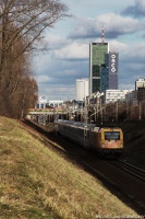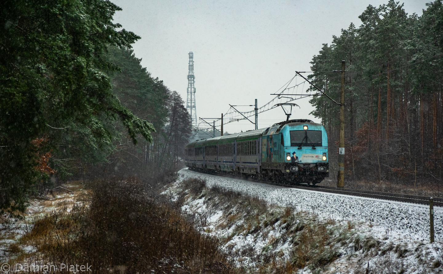 EU44-005 z pociągiem 73000 "Wawel" z Berlina do Krakowa, opuszcza Rzepin kierując się w stronę Zielonej Góry. Wszystkiemu towarzyszy dość intensywny opad śniegu.