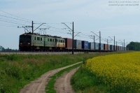 ET41-030 PKP Cargo ze składem węglarek do stacji Świnoujście SiA przejeżdża w ponury poranek pod wiaduktem drogi ekspresowej S3 na szlaku Rurka - Goleniów.