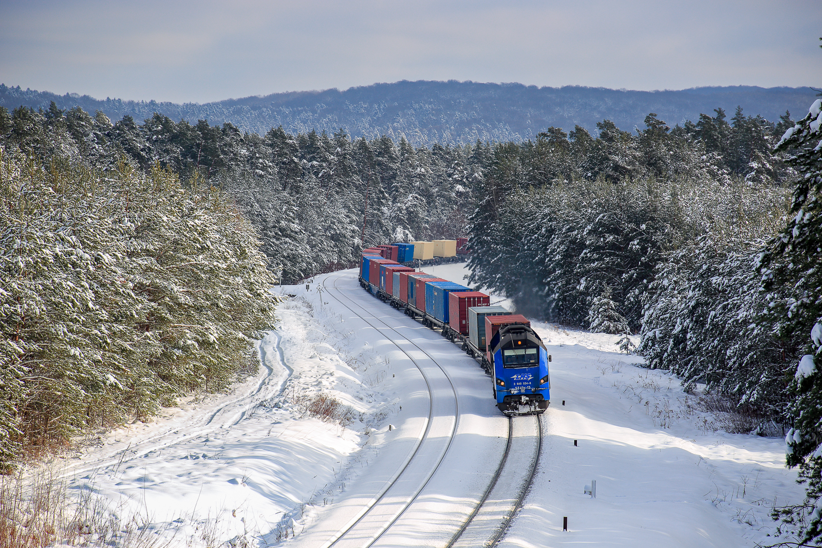 Drzewa uginały się nie tylko pod ciężarem śniegu ;-) wspiąłem się w piątek na jedną z sosen w okolicach przejazdu, ale nie doczekałem się już pociągu z właściwej strony. Chińczyk świetnie tu kontrastuje z tłem na tej wysokości.