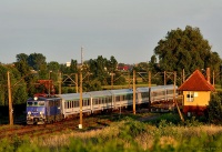 EP08-001 z pociągiem IC Heweliusz do Wrocławia Głównego, uchwycona chwilę po minięciu podg Dziarnowo.