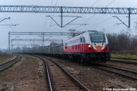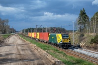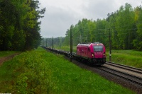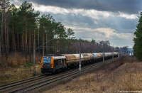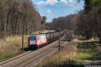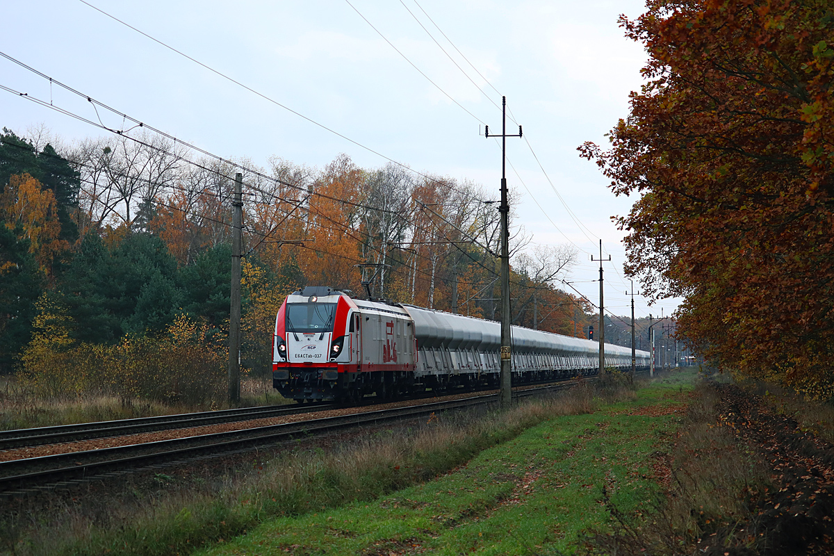 Pierwszy Dragon 2 RPC E6ACTab-037 w służbie Lotos Kolej ze zwartym składem gruszek jadących do Polic Chemii uchwycony na leśnym jesiennym odcinku w chwilę po opuszczeniu Kostrzyna.