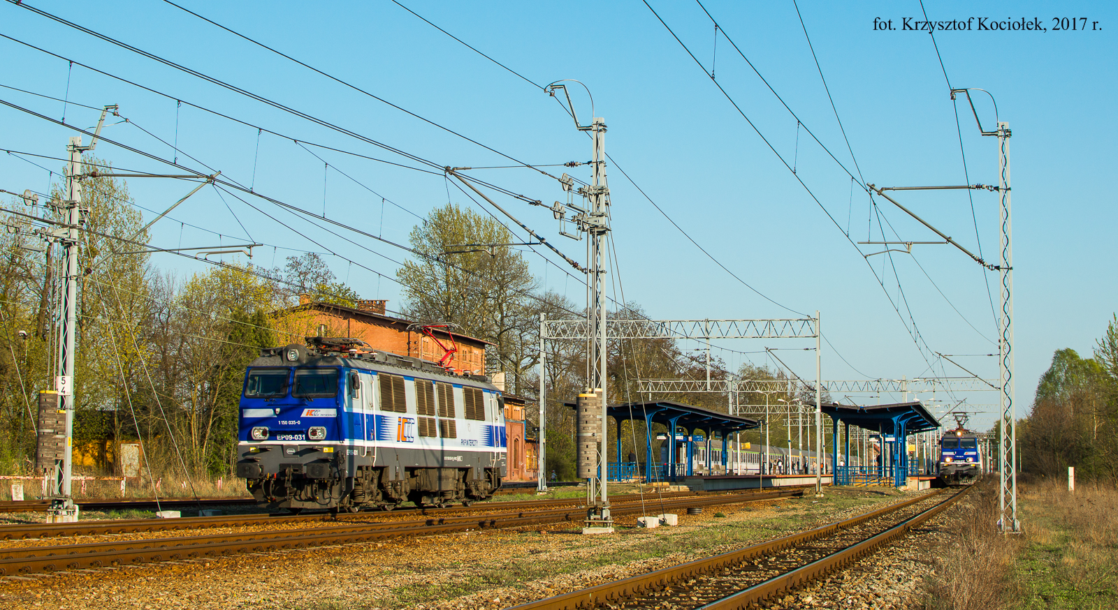 EP09-031 manewruje na stacji Pyskowice, a przy peronie trzecim stoi EP09-012 z pociągiem IC. Wypadek z udziałem pociągu Pendolino jaki miał miejsce 7 kwietnia 2017 roku na linii kolejowej nr 144 (proteza koniecpolska) spowodował, że szereg pociągów IC skierowano okrężną drogą przez Krupski, Młyn, Pyskowice, Strzelce Opolskie. Ze względu na fakt, że nie ma łącznicy umożliwiającej przejazd z Toszka Północnego do Toszka pociągi musiały cofać się do Pyskowic gdzie następowała zmiana kierunku jazdy i dalsza podróż w kierunku Opola/Lublińca. Przez kilkanaście dni ruch na tej (niegdyś ogromnej) stacji był naprawdę duży, gdyż należy pamiętać że oprócz pociągów objazdowych w dalszym ciągu kursowały tam przecież składy lokalne Opole - Gliwice i dalekobieżne z Katowic w kierunku Wrocławia. Wówczas można było sfotografować elektrowozy EP09 czy nawet Pendolino do Jeleniej Góry, które w tamtych okresie na tej linii były rarytasem.