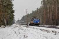 Retro Siódemka z pociągiem IC 8304 Matejko rel. Szczecin Główny - Przemyśl Główny mija w ponure przedpołudnie przedmieścia Rudnej jadąc szlakiem Rudna Gwizdanów - Koźlice w stronę Legnicy.