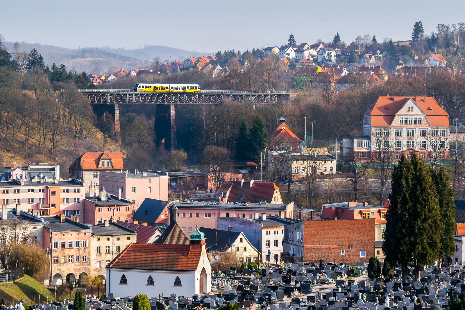 Dwudziesto dwu tysięczna Nowa Ruda, poza dawnymi kopalniami węgla kamiennego i pięknej starówki kojarzona jest również z imponujących mostów i wiaduktów, położonych w ciągu linii numer 286. Jeden z tych obiektów widoczny jest na powyższym zdjęciu. Nazywany przez miejscowych "Czarnym Mostem" jest najprawdopodobniej najwyższym mostem w Polsce. Wysokość od główki szyny od tafli wody Woliborki wynosci ponad 35 metrów. Z powodu niskiej, maksymalnej wartości nacisków osi na tor, słabym stanie technicznym szlaku, niskiej prędkości drogowej, dużej liczbie "sierżantów" i małej przepustowości linii 286 możemy tu spotkać jedynie 6 par pociągów Kolei Dolnośląskich. Towarowych wahadeł pociągów zdawczych czy przejazdów luzaków tutaj nie uświadczymy. Niemniej każdy przejazd pociągu KD, czy po Czarnym Moście, czy po moście na Zatorzu, czy w Ludwikowicach za każdym razem wywołuje spore wrażenie i mimowolne podniesienie głowy do góry ;)