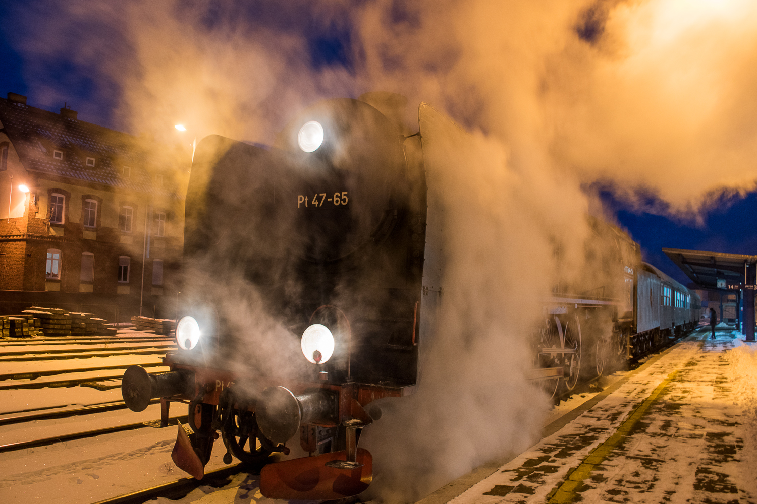 Świat spowity jest jeszcze mrokiem, na stacji stoi Pt47-65 i jedynie lampy peronowe rzucają światło na piękną maszynę. Termometr pokazuje -7°C, wszędzie leży śnieg, na peronie prawie nikogo nie ma. Wokół cisza, słychać tylko pracę parowozu. Taka chwila mogłaby trwać wiecznie. Kolejne marzenie spełnione, parowóz zimą zaliczony.