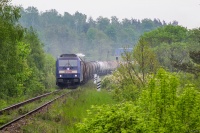 W deszczową, ponurą aurę lokomotywy BR285 023-6 i SM42-2563 mozolnie wciągają do Gdańska Osowej skład pociągu TKS 553070 relacji (Przywory Opolskie) Gdynia Port GPA - Gdańsk Kokoszki.
