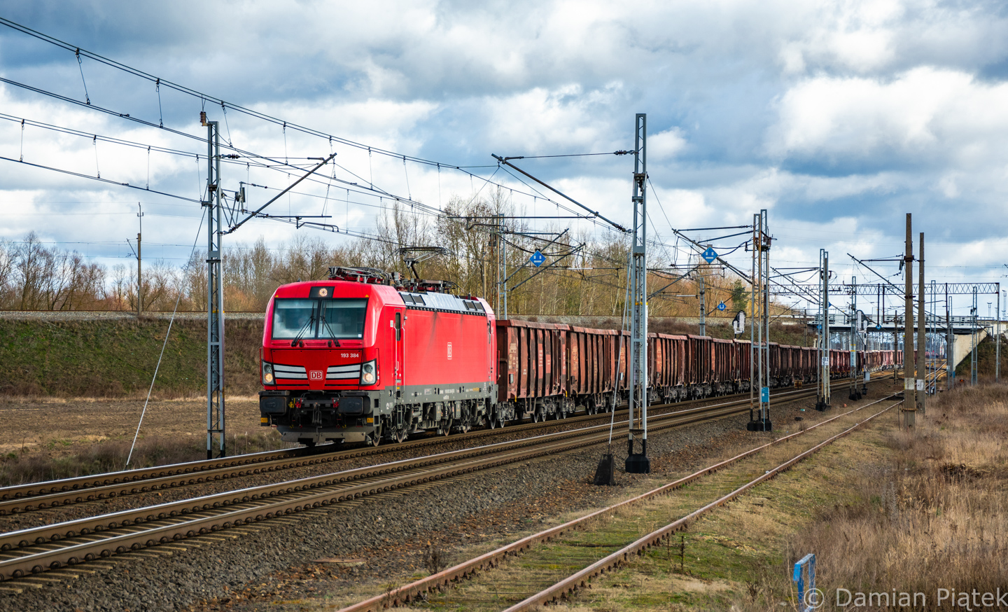 Vectron 193 384 ze składem węglarek relacji Rykoszyn - Ziltendorf opuszcza stację w Rzepinie kierując się w stronę Niemiec.